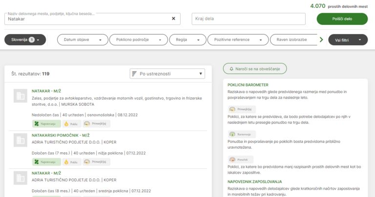 Decembra smo uspešno zaključili projekt prenove spletnega portala Zavoda RS za Zaposlovanje. Poleg osvežene grafične podobe so naši strokovnjaki v tesnem sodelovanju z naročnikom razvili tudi številne nove spletne aplikacije. Najpomembnejša in iskalcem zaposlitve najzanimivejša je prav gotovo storitev za napredno iskanje prostih delovnih mest v Sloveniji in EU/EGP.